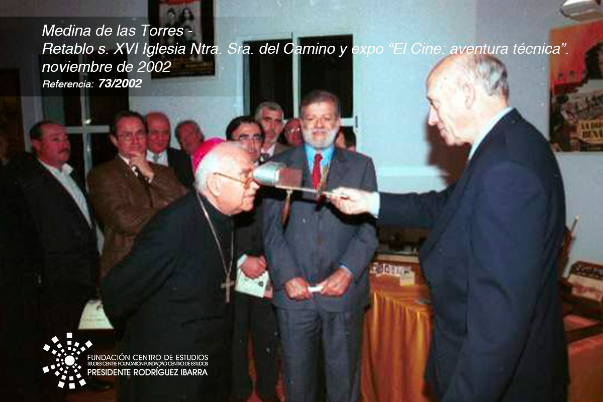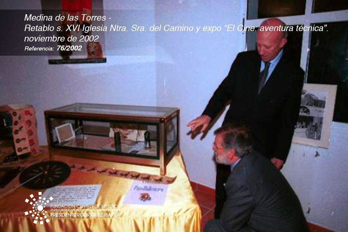 Además, del día de la inauguración de estas obras de restauración, también tuvo lugar la visita a la exposición titulada “El Cine: aventura técnica” de Jesús Prato, inaugurada el 8 de noviembre del 2002 y localizada en el Centro de la Juventud de Medina de las Torres. Formada por más de 200 piezas de la colección “Pato Ballesteros” de Madrid, fue catalogada como una de las tres mejores colecciones privadas en España.
